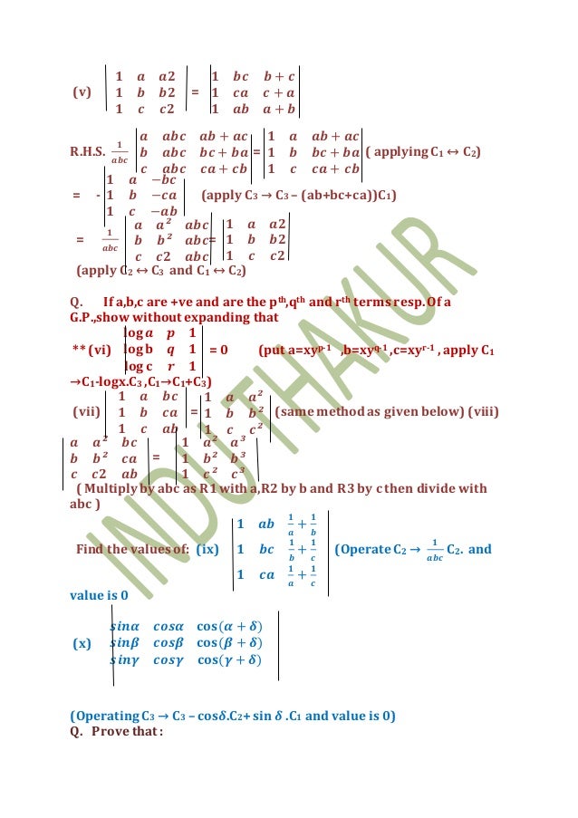 Unit 02 Part 1 Determinant Matrix R 3 And Then Solving The Determinant We Get X 0 Or X2 A B C Ab Ca2 2 2 B Abc 0 A 2 B C 2abc